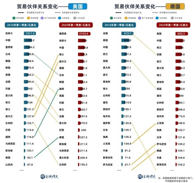 另一方面,除了深化亚太区域经济合做,中国还取拉丁美洲、中东等地域的国度成立了愈加慎密的联系。相关地域国度正在中国商业伙伴排名中的大幅上升。